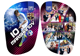 В эту стоимость входит (разработка индивидуального дизайна по просьбе заказчика, обработка любого количества фотографий присланные заказчиком, нанесения коллажа на щиток, цвета клуба, эмблема клуба, надписи, номер футболиста и прочее)